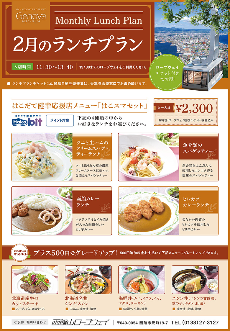 函館山ロープウェイ山頂レストランジェノバの2月のランチプランをご紹介します!