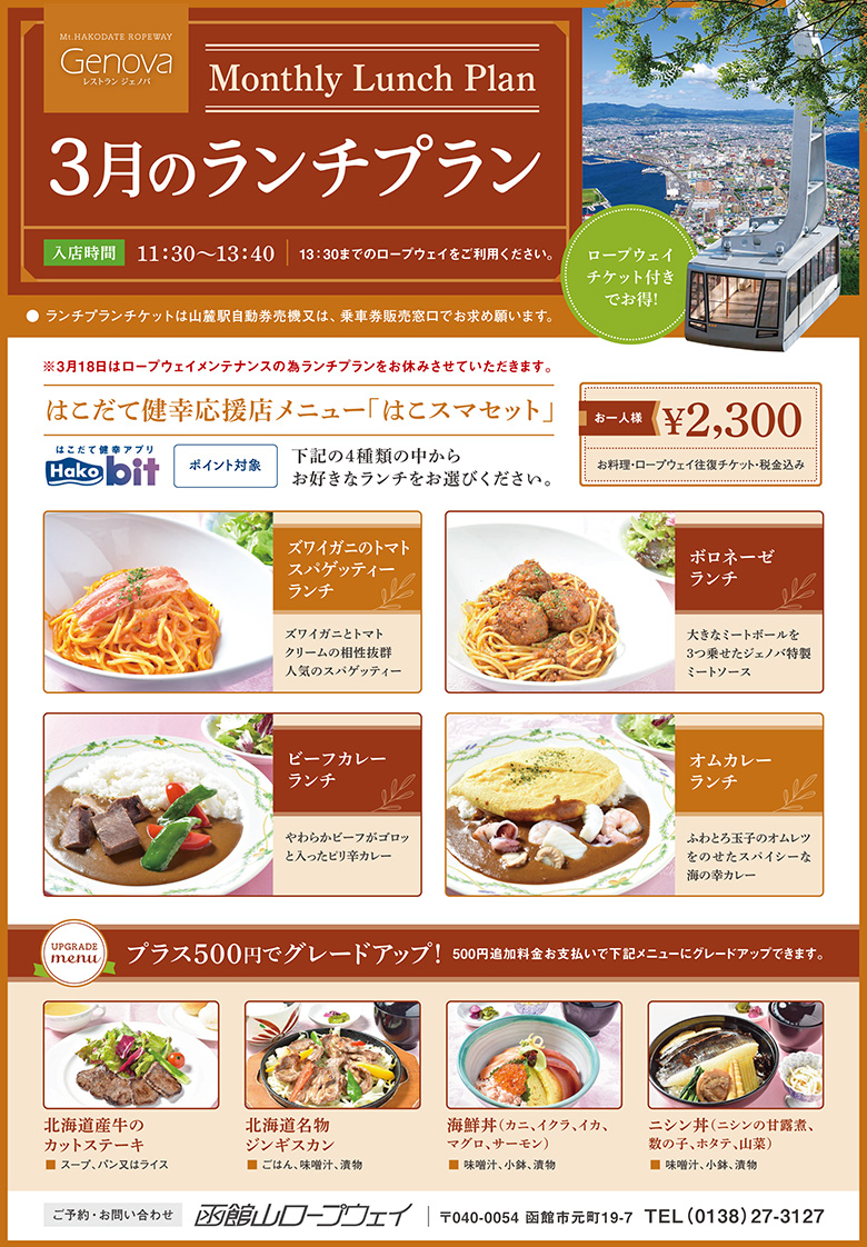 函館山ロープウェイ山頂レストランジェノバの3月のランチプランをご紹介します!