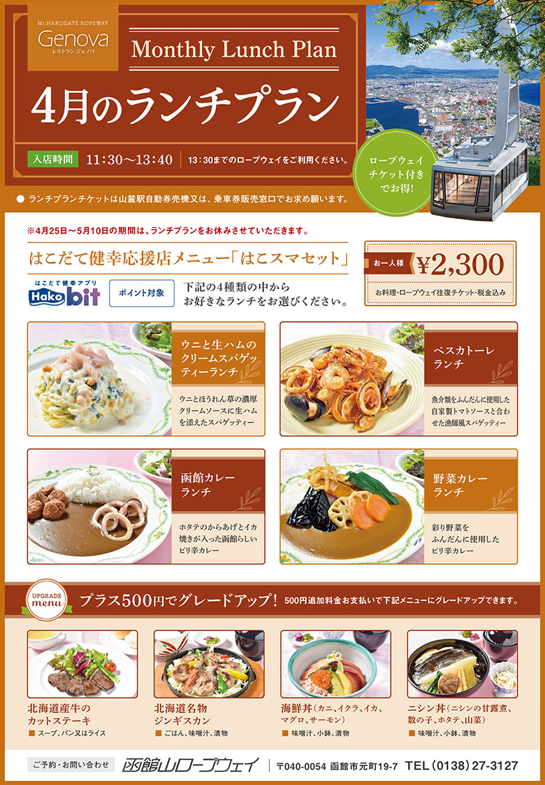 函館山ロープウェイ山頂レストランジェノバの4月のランチプランをご紹介します!